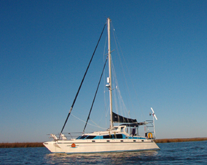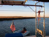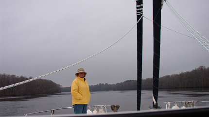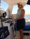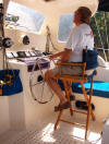 | Lynn stood her fair share of watches at the helm. She was especially good at night since she couldn't sleep for fear of being run over by some ocean liner or tanker. | |