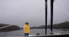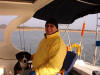 | A late season departure means we had to take warm clothes. Here Lynn is in squall jacket on the bow. | |