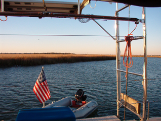 | Our favorite ICW anchorage was here at Steamboat Creek. There was a launch ramp nearby where Toby could go ashore for exercise. | |
