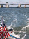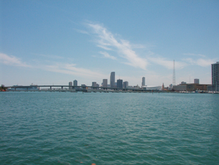 | Near the end of the long slog south down the ICW, we have Miami astern as we head into Biscayne Bay | |
