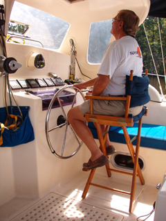 | We bought this helm chair (bar stool) for the long days of motoring on the ICW. It is not good in rough water and is in the way when trimming sails but it sure made the ICW more pleasant. We just stowed it out of the way when we were offshore or sailing. | |