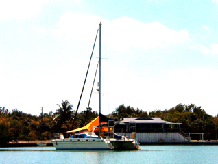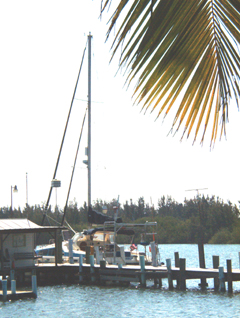 | One of our favorite stops was at "Jones Fruit Dock." Mr. Jones, in his mid 80s, no longer sells fruit. His groves were wiped out in a hurricane a few years ago, but he still has room for a couple of cruisers to spend the night. We had a great visit. | |