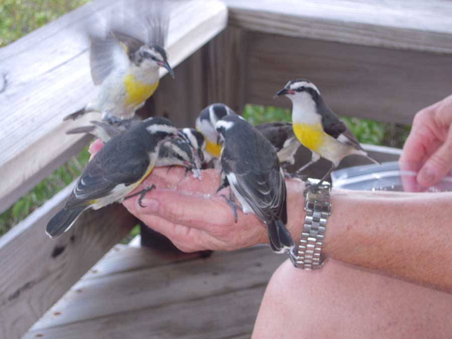 can make lots of new friends. We are feeding the Bananaquits at Park HQ.