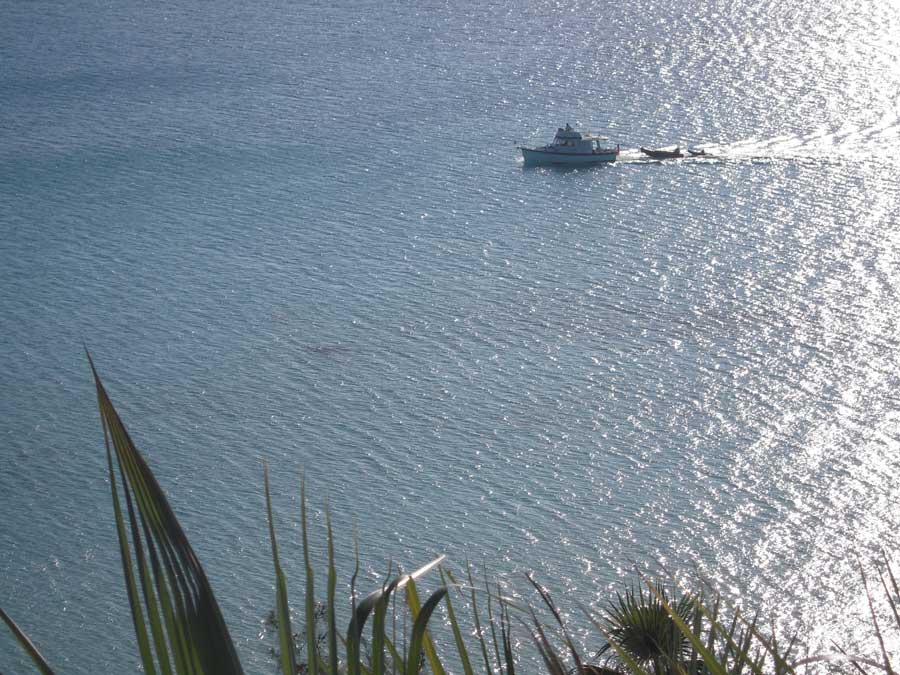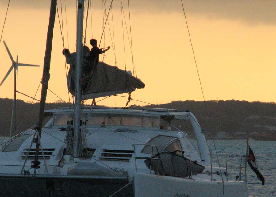 catamaran anchored behind us near Volleyball Beach. The two boys were