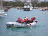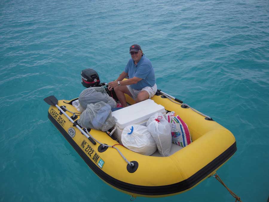 laundry bags just about filled the dinghy. Not much room for Lynn to get