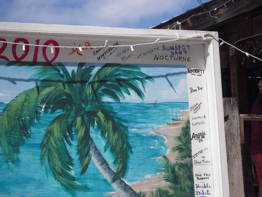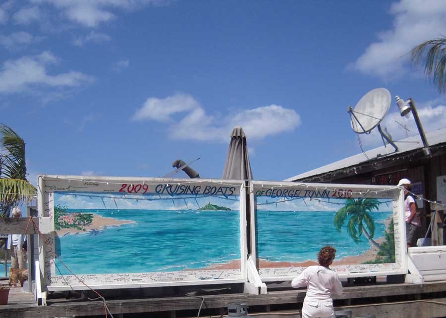 cruisers at the Chat & Chill. Boats write their names around the border.