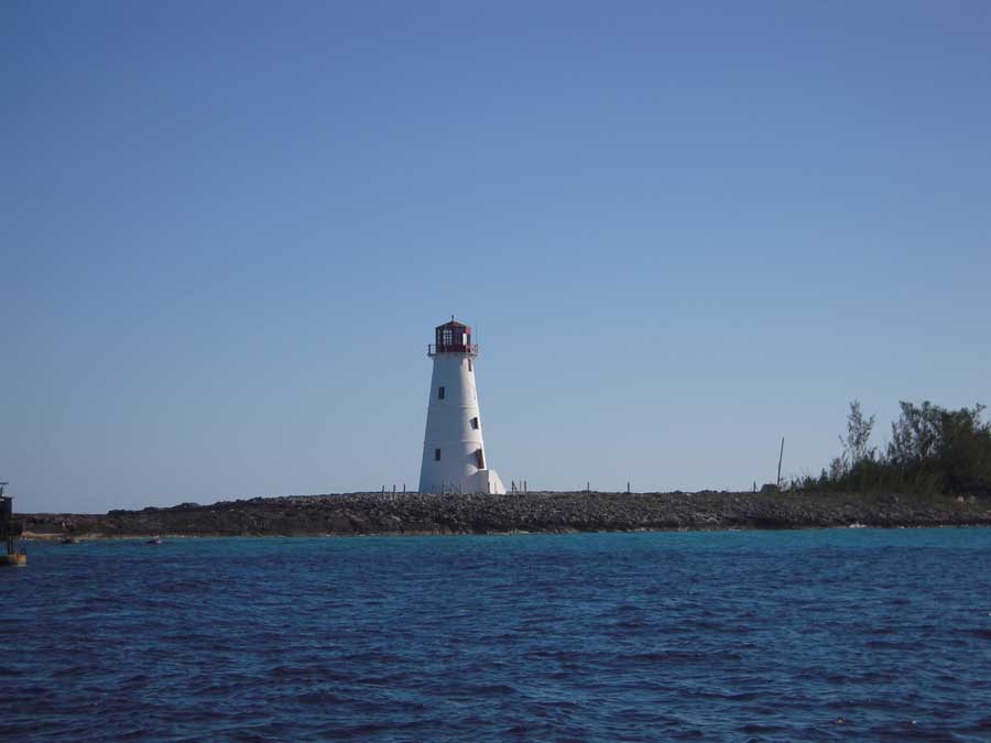 landmark lighthouse at the entry to Nassau Harbor. We arrived early on